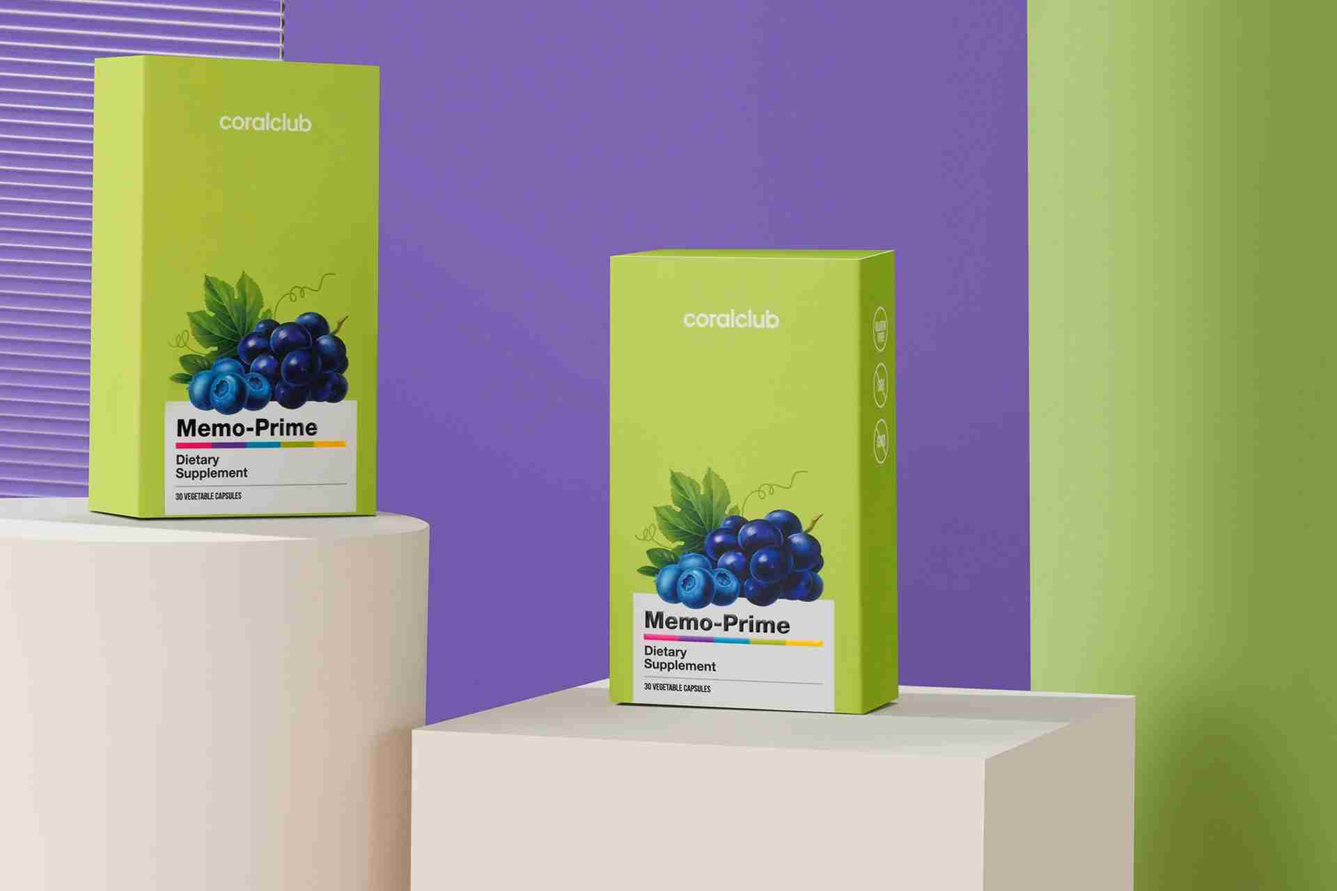 Memophenol™ (экстракт французского винограда и дикой канадской голубики) 300 мг, экстракт зеленого чая 50 мг, витамин В12 (метилкобаламин) 3 мкг, цинк 2,3 мг (из оболочки капсулы), витамин В6 (пиридоксаль 5-фосфат) 2 мг, витамин В9 (L-метилфолат кальция Extrafolate-S™) 100 мкг, вспомогательные компоненты.